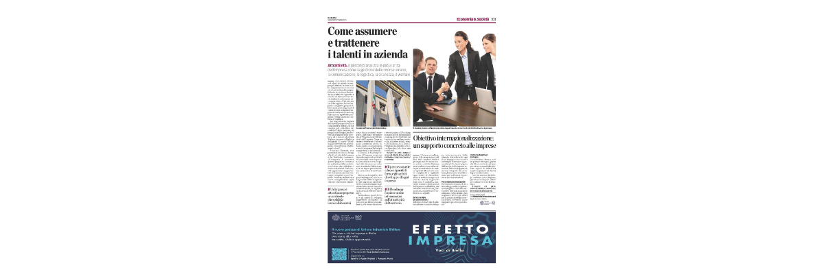 La nuova pagina dell'Unione Industriale Biellese all'interno di Economia e Società, il focus economico del venerdì su Il Biellese, è dedicata al Roadmap per l'attrattività dell'impresa. Come attrarre e trattenere i talenti e al Servizio Internazionalizzazione.