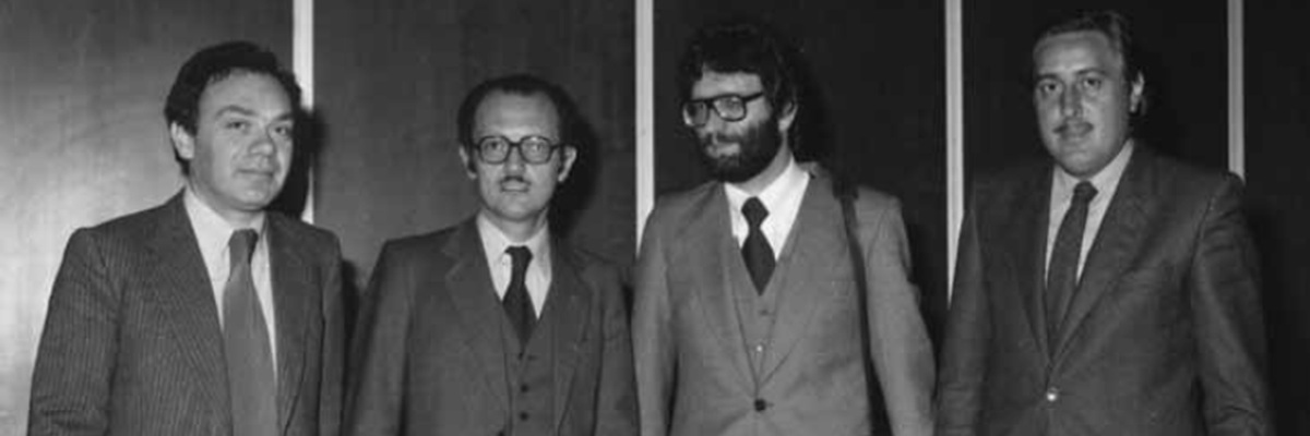 Carlo Barberis Canonico, primo da sinistra, con Giulio Barberis Canonico, Ermanno Strobino e l'allora presidente Uib, Paolo Botto Poala