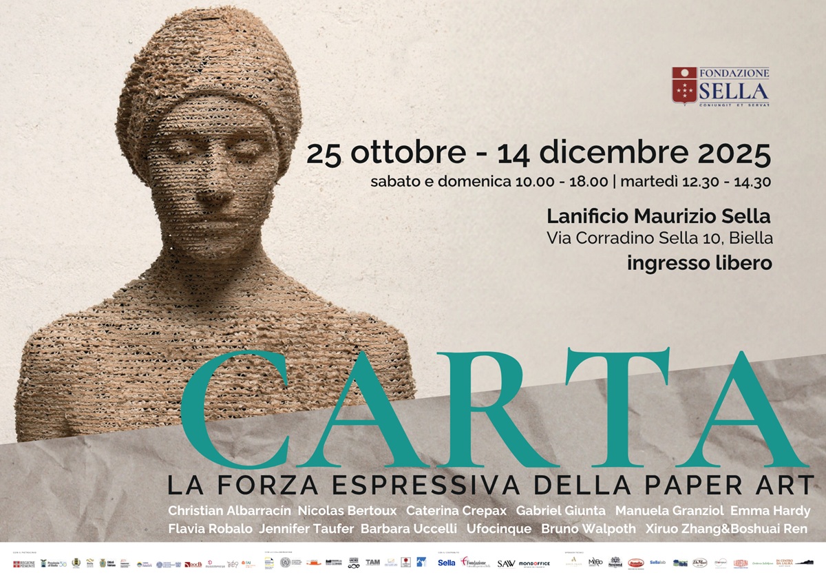 Con inaugurazione venerdì 24 ottobre 2025, la mostra CARTA. La forza espressiva della Paper Art curata da Dina Pierallini e Elena Bermond des Ambrois, offre un panorama internazionale sulla scultura contemporanea in carta e legno. Prodotta da Fondazione Sella , con il patrocinio, fra gli altri, di Unione Industriale Biellese, la mostra allestita nello storico Lanificio Maurizio Sella a Biella è un omaggio alla bellezza e un'analisi della trasformazione e della memoria: la scelta di realizzare un percorso che unisce carta e legno è particolarmente significativa in un periodo storico in cui il rapporto tra uomo e natura è osservata attraverso una lente critica. Il legno, resistente, con le sue venature uniche, e la carta, leggera, con la sua fragilità, diventano metafore della condizione umana: resilienti ma vulnerabili, con profonde radici nel tempo e slancio verso il futuro.