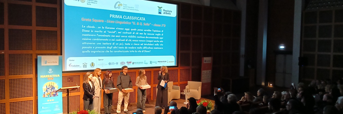 Gli studenti sono da sempre un tema centrale per il Premio Biella Letteratura e Industria: a ciascuna edizione del Premio si affianca anche il Concorso Scuole, rivolto agli allievi degli istituti superiori del Piemonte, che anche quest’anno ha avuto per titolo “UNA DOMANDA PER AUTORE”. Il concorso è sostenuto dal Gruppo Giovani Imprenditori dell’Unione Industriale Biellese, in collaborazione con VideoAstolfoSullaLuna, con il patrocinio della Provincia di Biella.