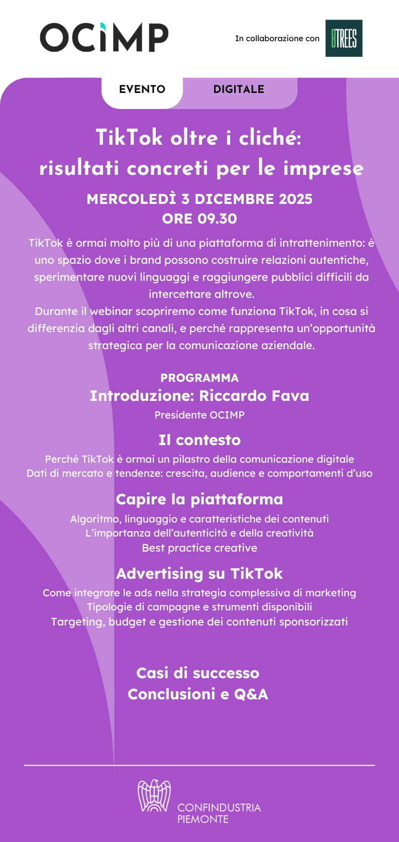 Unione Industriale Biellese aderisce all'Osservatorio per la Comunicazione d'Impresa - OCIMP, che propone questo webinar in collaborazione con Btrees.