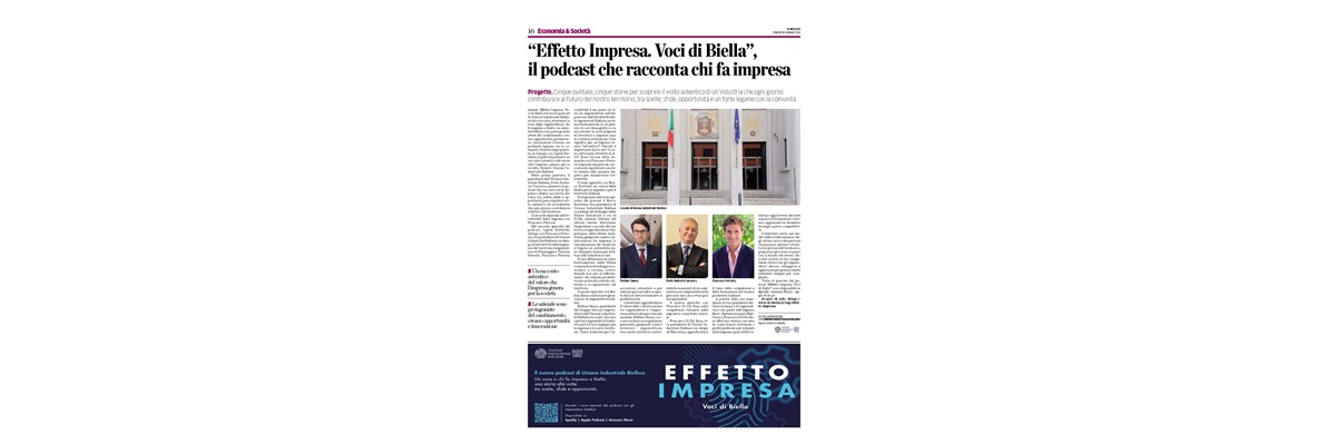 La nuova pagina dell'Unione Industriale Biellese all'interno di Economia e Società, il focus economico del venerdì su Il Biellese, è dedicata al podcast dell'Unione industriale biellese, Effetto Impresa.